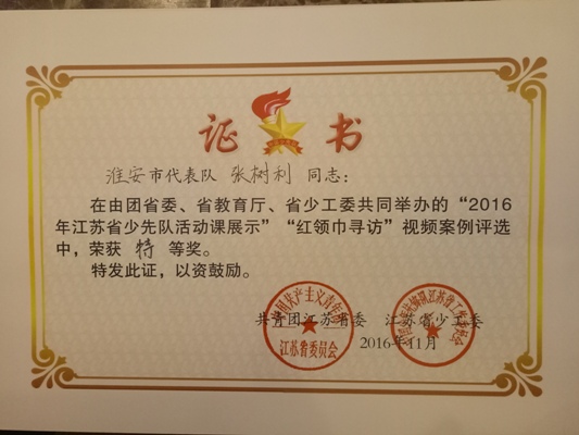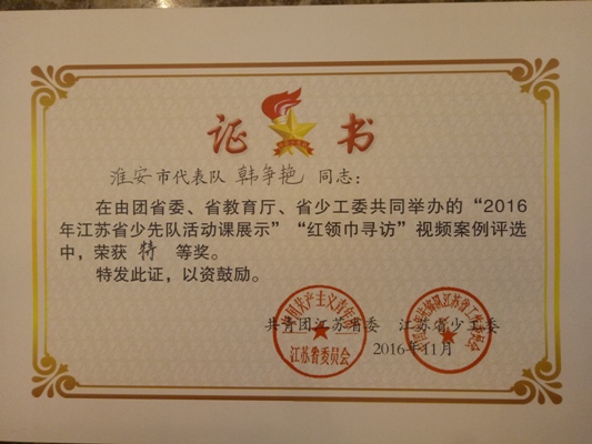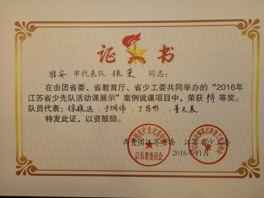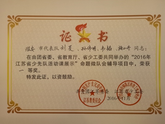 11月20—22日,我市5名辅导员和4名少先队肩负重任,代表全市9000名少先队大中队辅导员和42万名少先队员,与全省其他12市的60名辅导员和48名少先队员代表汇聚在泰州市实验小学,参加由共青团江苏省委、省教育厅、省少工委联合举办的全省少先队活动课说课大赛。大赛包括少先队活动案例说课、红领巾寻访视频和命题微队会三个环节,最终我市综合得分在全省13个市中排名第三,喜获团体金奖,继续保持全省领先态势。