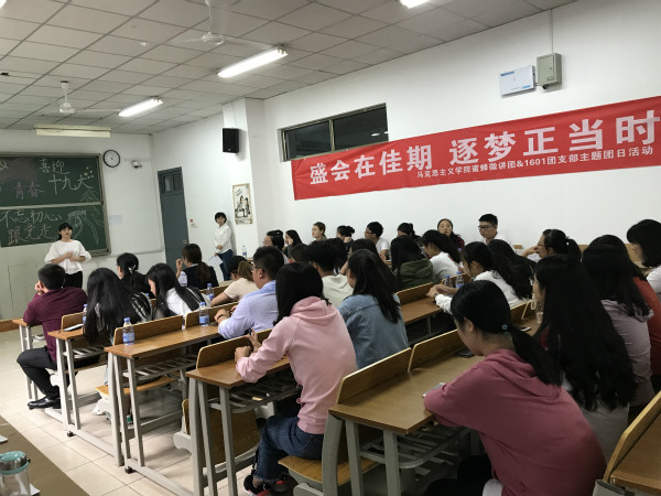 淮师马院团支部开展“青春喜迎十九大,不忘初心跟党走”主题团日活动青春喜迎十九大,不忘初心跟党走。10月10日,马克思主义学院大学生蜜蜂微讲团携手1601团支部举行主题团日活动,团结引领广大青年以奋发向上的精神状态迎接党的十九大胜利召开。法政、经管以及美术学院的代表到场观摩学习。